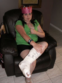 Last week my niece, Erin, broke her ankle in 2 places by walking in her high heels (you go girl!!). It was a bit tricky getting up our stairs and the Fireman was on holidays so he wouldn’t carry her up. Meanie.