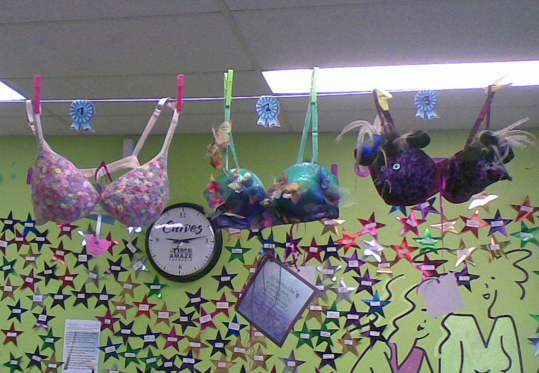 Whhhheeeeee! I won 3rd prize for the wacko bra I decorated for the Croydon Curves competition.