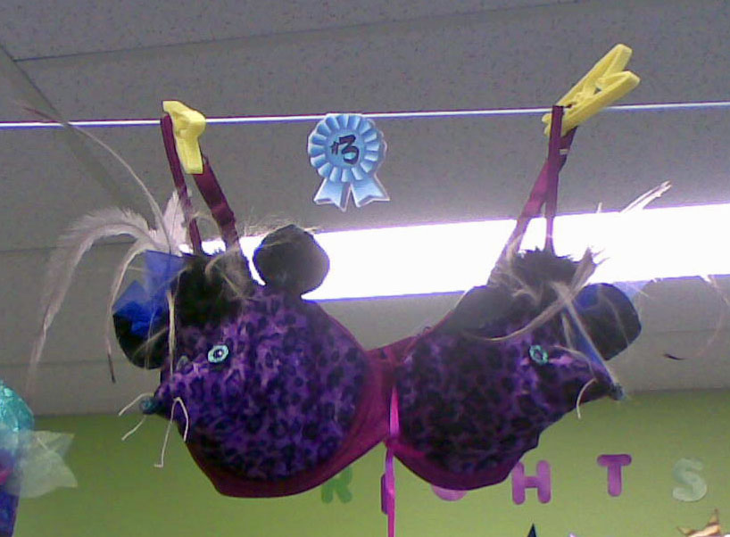 It was voted on by participants who paid to vote and raised $58 by voting for my bra! The winner and 2nd prize raised even more and all funds went to Breast cancer research.
