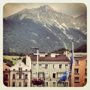 After Munich we arrived back to Austria to Innsbruck, which is a mall village surrounded by enormous snow capped mountains. Sophie had found a special deal on the Hilton hotel so it was pretty exciting and a nice break to stay there and eat a REAL breakfast. We even had TV WITH English speaking channels and movies woohoo! We ate so much breakfast that we didn’t need lunch and had an early tea at 4 pm instead.
