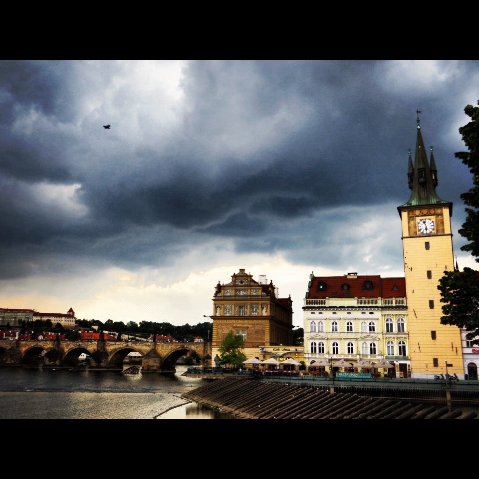 We managed to catch a train into Prague and walked around for a while before sighti g big black storm clouds. After a very yummy meal we came back in time for the storm to hit. Here’s a pic of the sky just before we left…